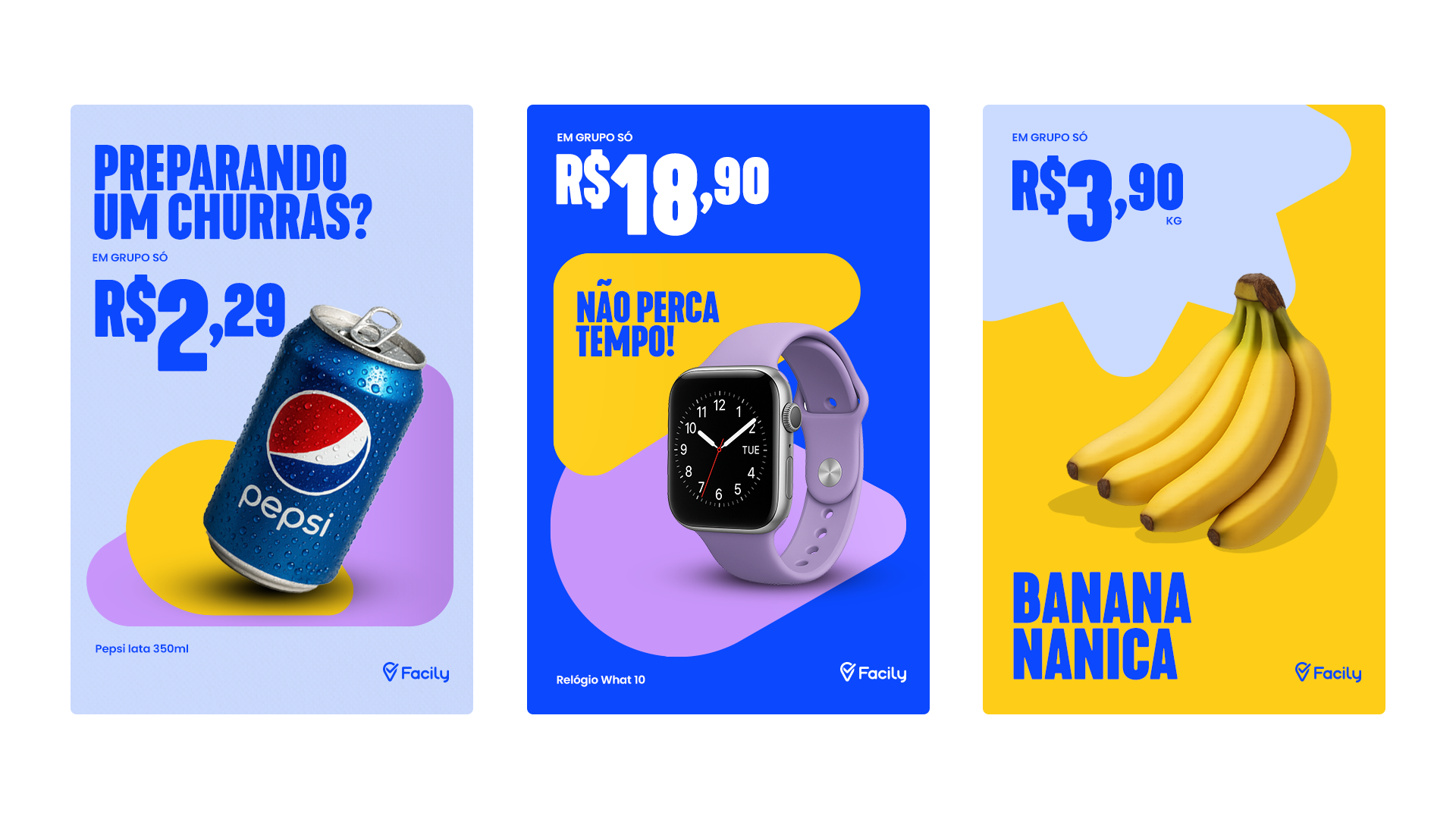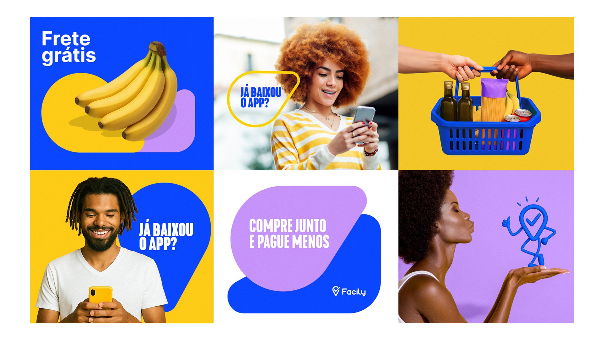 A Facily revoluciona o social commerce, tornando compras coletivas mais acessíveis para milhões de pessoas. Para traduzir essa missão em identidade visual, desenvolvi toda a parte criativa da marca, conectando propósito e design. Cada detalhe – do logo às cores, passando pela linguagem visual – reflete inovação, colaboração e acessibilidade, pilares que fazem da Facily uma experiência única no varejo digital.